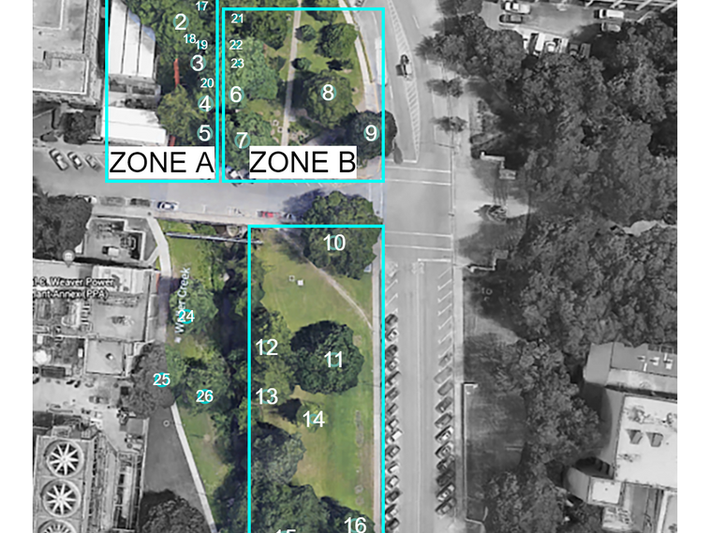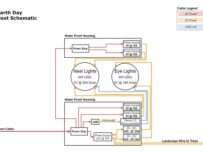 I've been part of the creative design team working to tell the story of the creek monster since the summer of 2019. My contributions initially centered on surveying the installation site and creating a 3D pre-visualization of the space that we used to plan our design concepts. As the project has developed and moved to UT campus for Earth Day I've taken on a system design role and focused on developing low power interactive lighting systems that can convey the dynamic life of the Waller creek ecosystem.